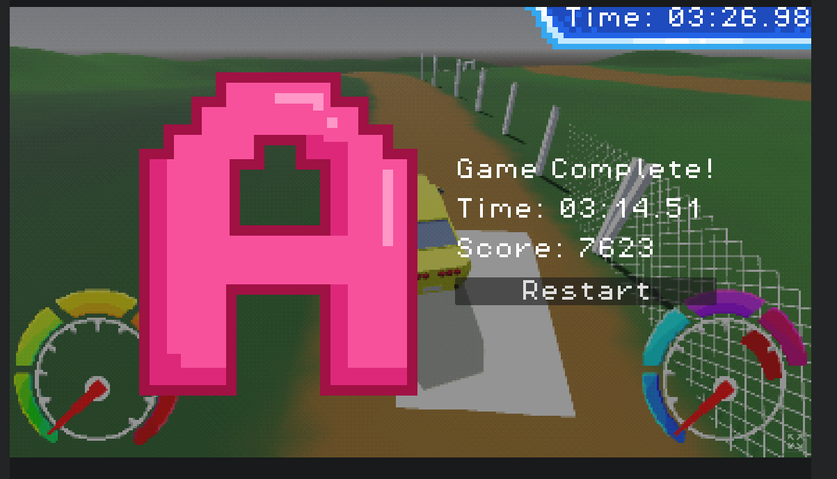 I got a time of pi, cool game! I've made a racing game from scratch like this before so I know how hard it is to get it tuned this well, great work!